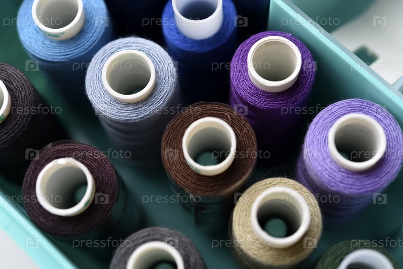 Набор разноцветных швейных ниток. Мотки ниток в пластиковой коробочке