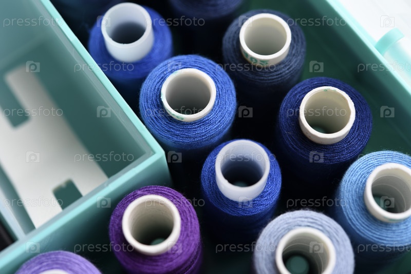 Набор разноцветных швейных ниток. Мотки ниток в пластиковой коробочке