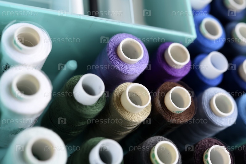 Набор разноцветных швейных ниток. Мотки ниток в пластиковой коробочке