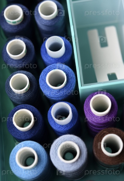 Набор разноцветных швейных ниток. Мотки ниток в пластиковой коробочке