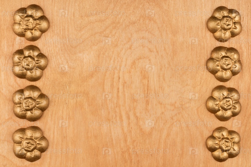 Рамка из золотых декоративных украшений, лежащих на дереве