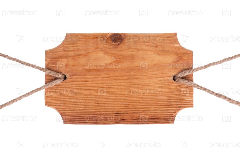 Деревянная световая вывеска висит на четырех веревках. Изолированные на белом фоне