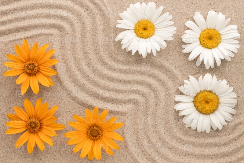 Красивый зигзаг песка и цветов, на песке растут ромашки