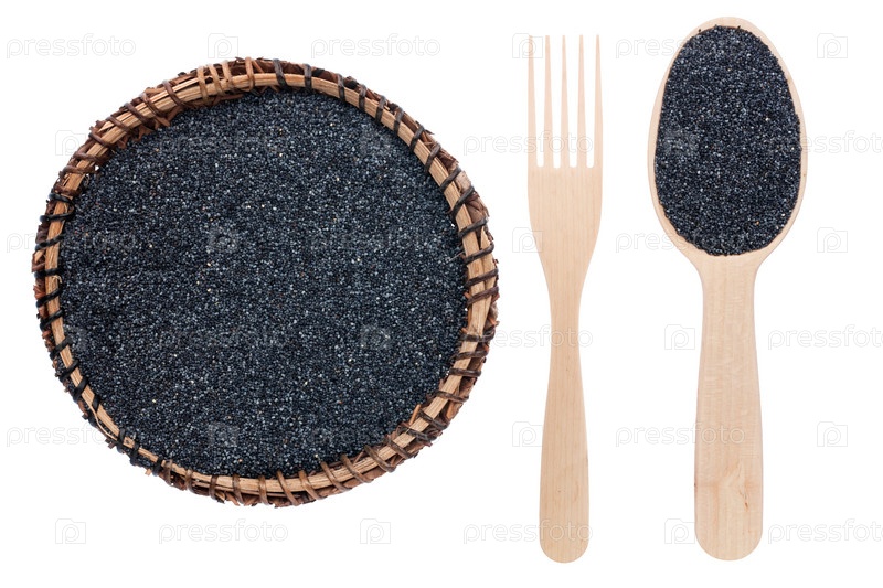 Мак в тарелке, вилке и ложке