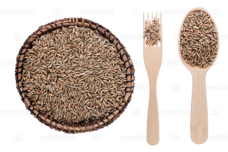 Рожь в тарелке, вилке и ложке