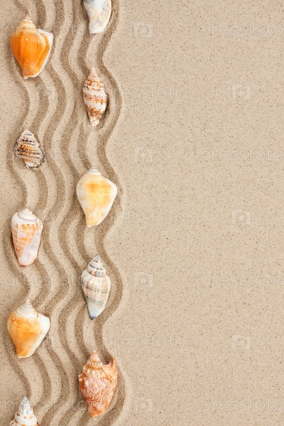 Полоса ракушек, лежащих на песке