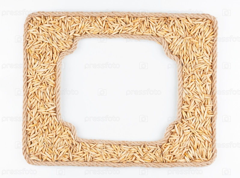 Две рамки веревки с овсяным зерном на белом фоне
