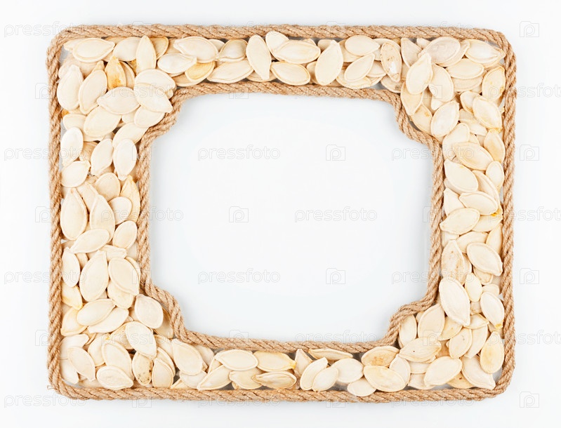 Две рамки веревки с тыквенными семечками на белом фоне