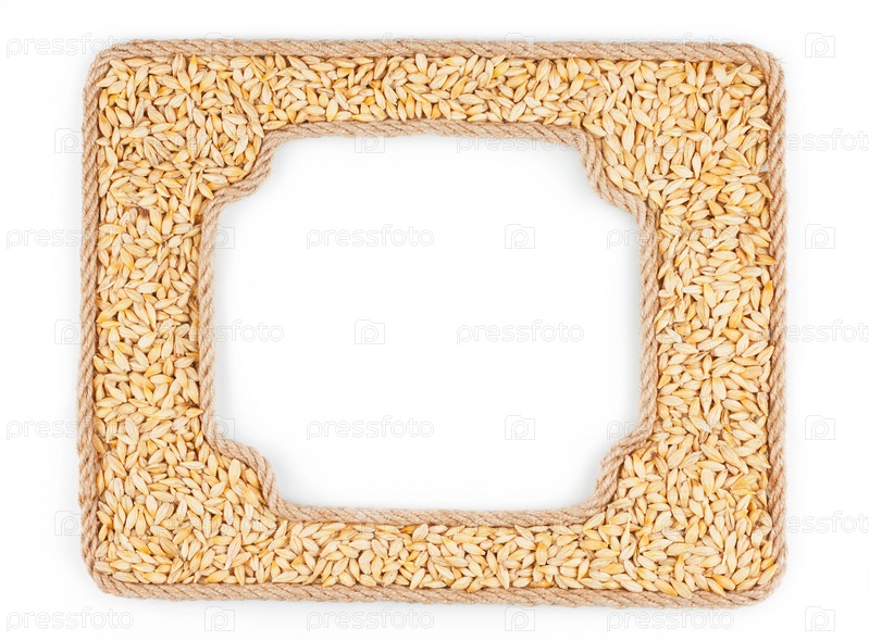 Две рамки веревки с зерном ячменя на белом фоне