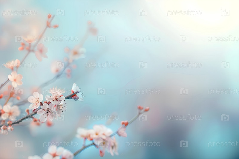 Весенний цветущий фон деревьев, нежный свежий цвет вишни, красивый японский сад, красота и нежность природы