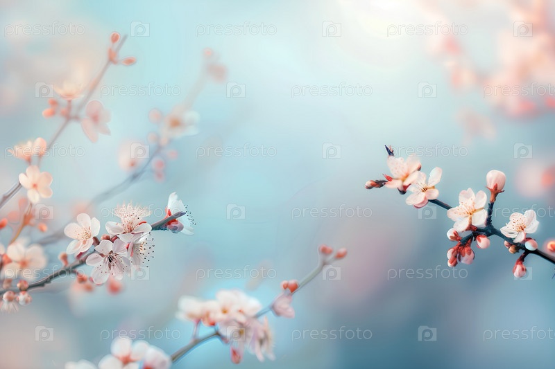 Весенний цветущий фон деревьев, нежный свежий цвет вишни, красивый японский сад, красота и нежность природы