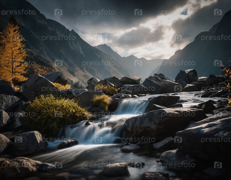 Красивый кинематографический горный пейзаж с черным мрамором и гранитом