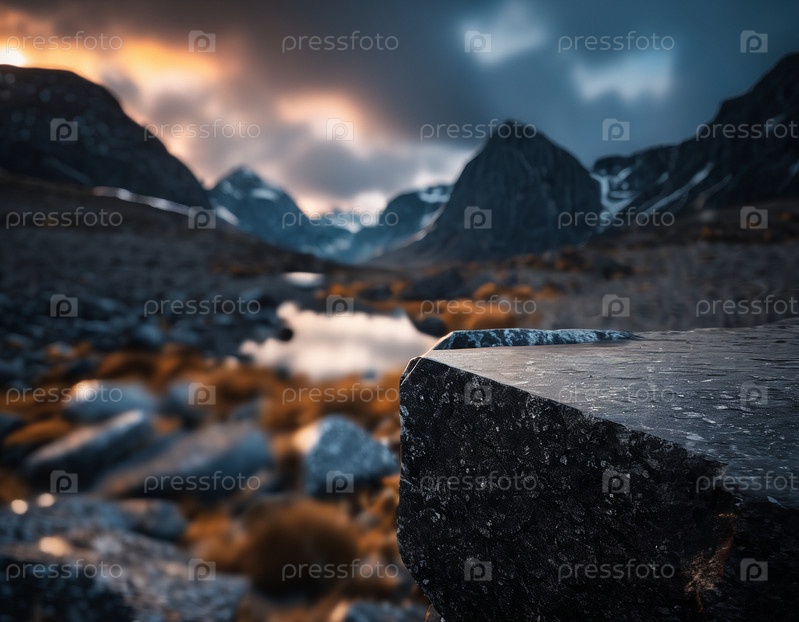 Красивый кинематографический горный пейзаж с черным мрамором и гранитом