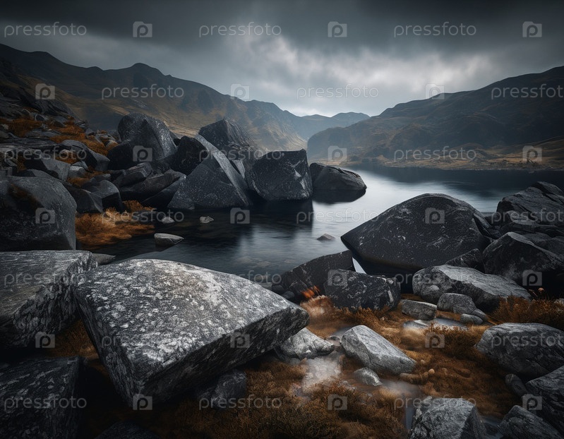 Красивый кинематографический горный пейзаж с черным мрамором и гранитом