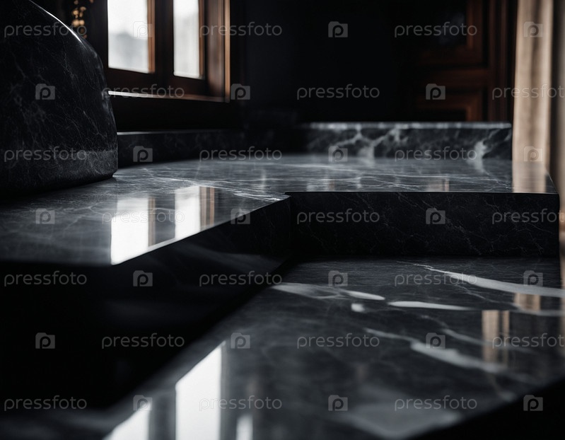 Профессиональный дизайн интерьера с использованием дорогого черного мрамора и гранита. Отличный фон для презентации и продукта