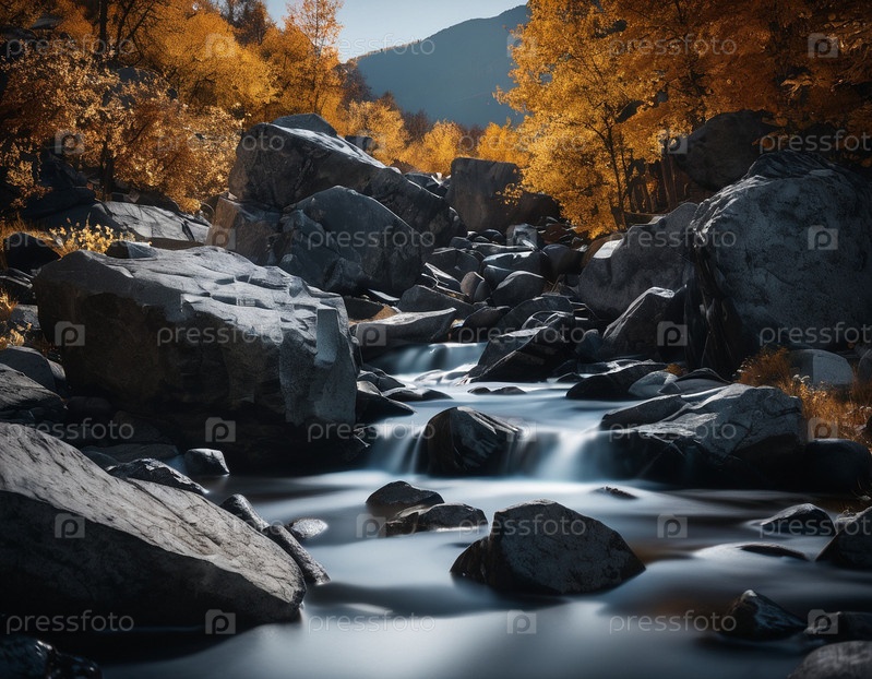 Красивый кинематографический горный пейзаж с черным мрамором и гранитом