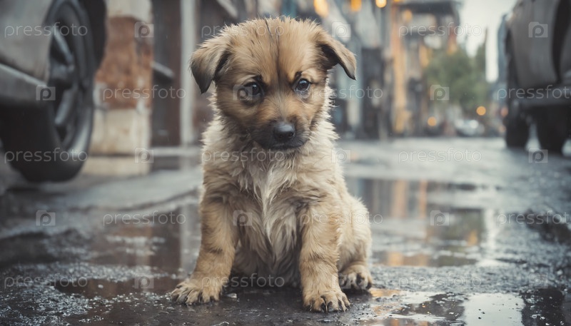 Грустный одинокий щенок