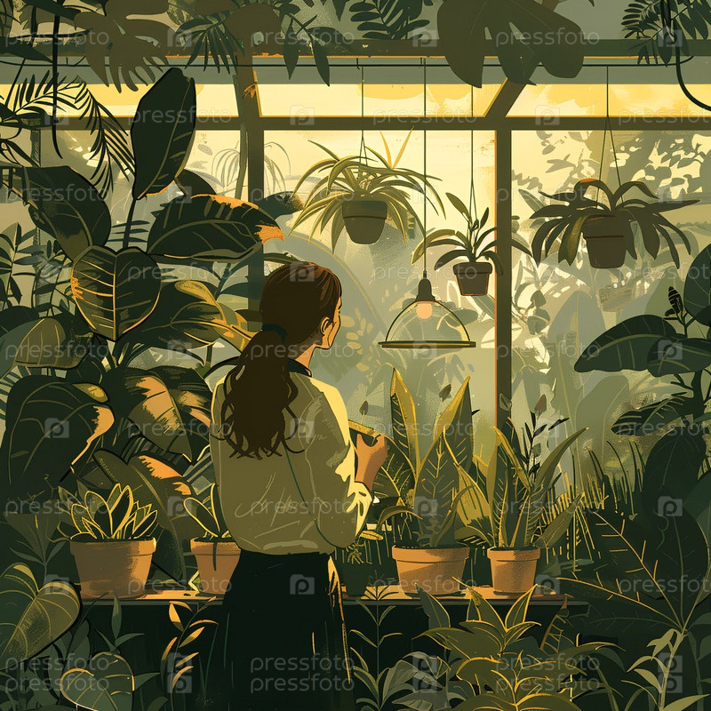 Оранжерея с растениями, зимний сад