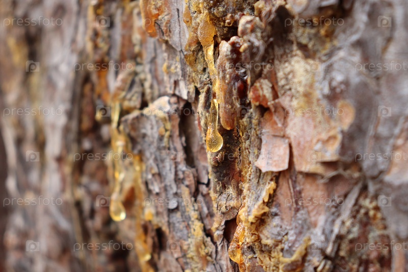 Смоляные капли на стволе дерева