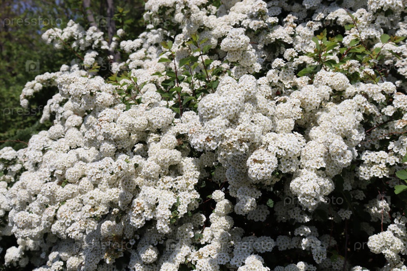Белоснежные цветы на кусте.Спирея вангутта