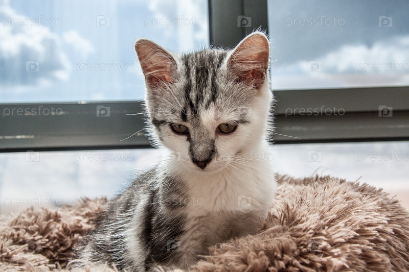 Котенок серого цвета крупным планом