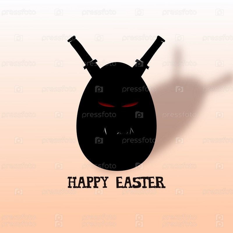 Открытка черное пасхальное яйцо ниндзя с мечами за спиной