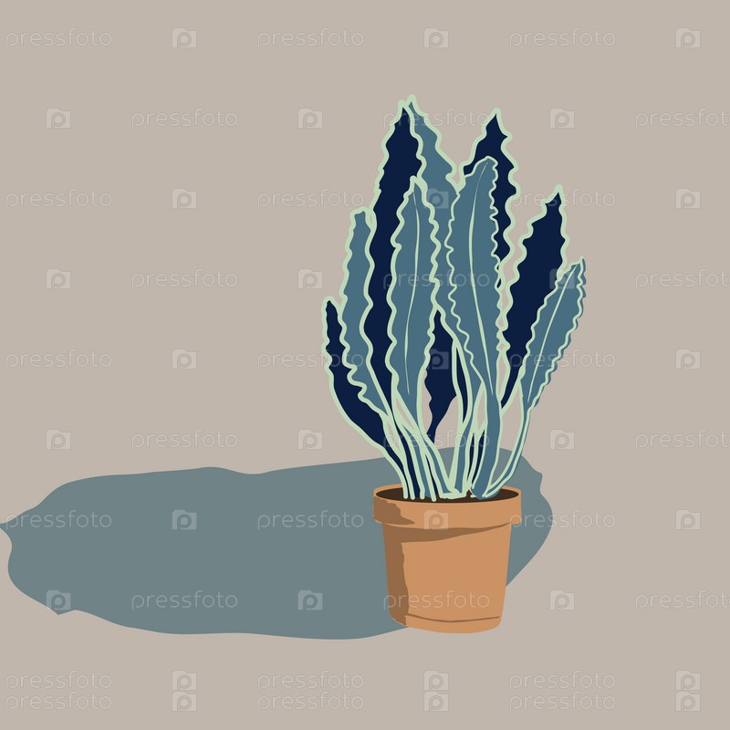 Стилизованный цветок в горшке с большими листьями
