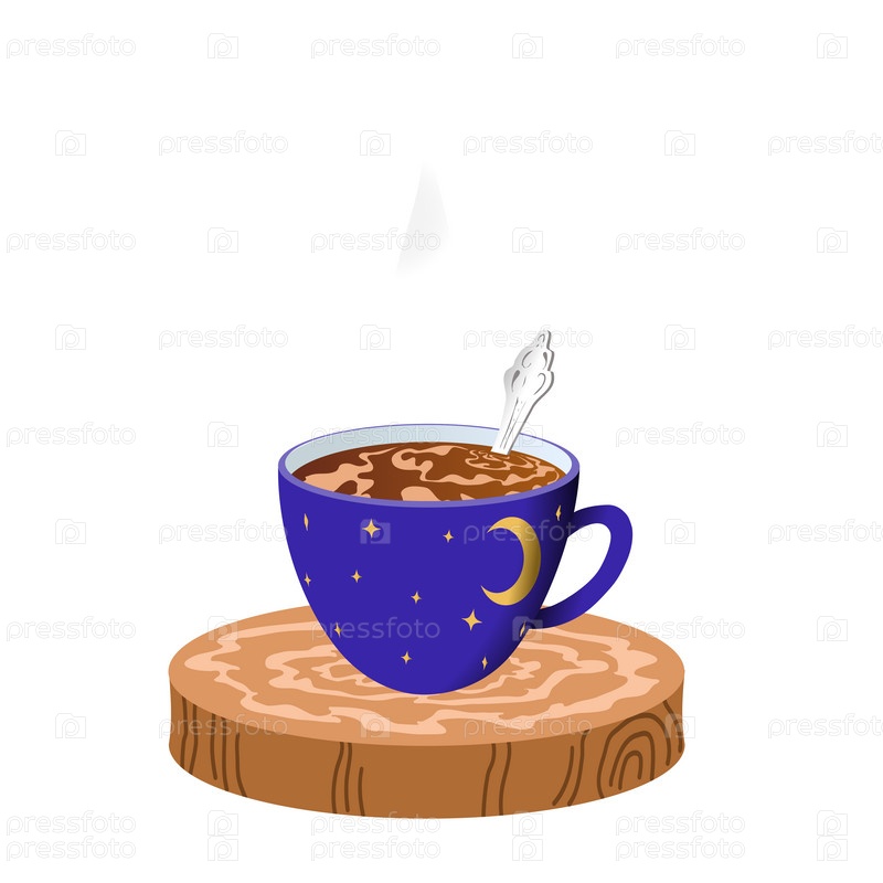 Кофейная кружка ночное небо на деревянной подставке