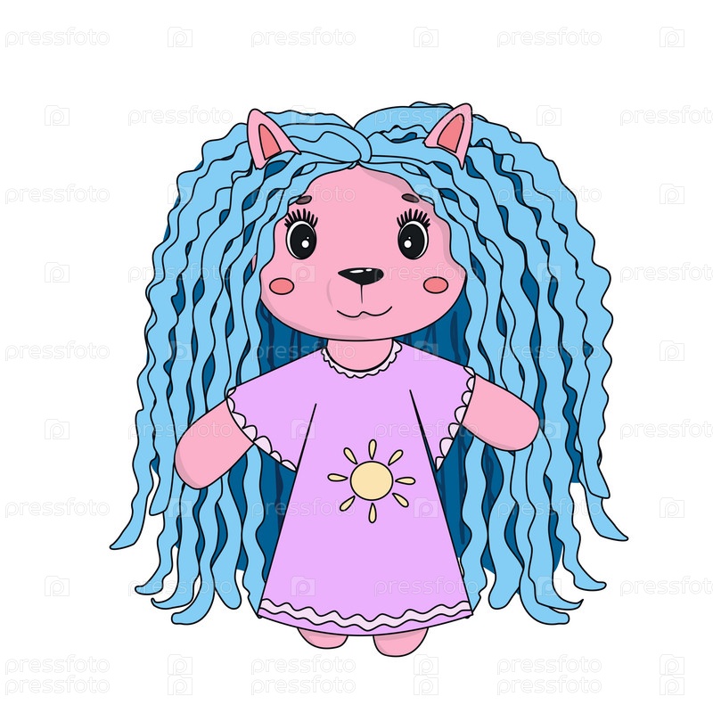Милый малыш-животное с голубыми волосами и солнцем в пижаме