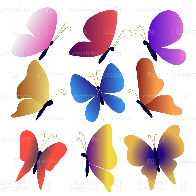 Набор цветных бабочек с градиентом на крыльях