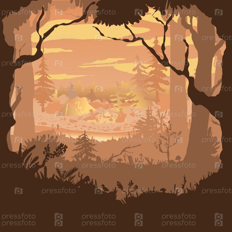 Красивая стилизованная иллюстрация лагеря в лесу