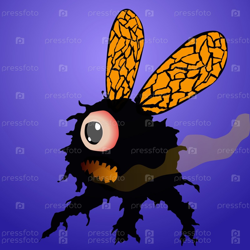 Маленький черный монстр с открытым ртом летает и выпускает дым изо рта, поскольку он лавовая пчела, плюющаяся лавой, когда злится