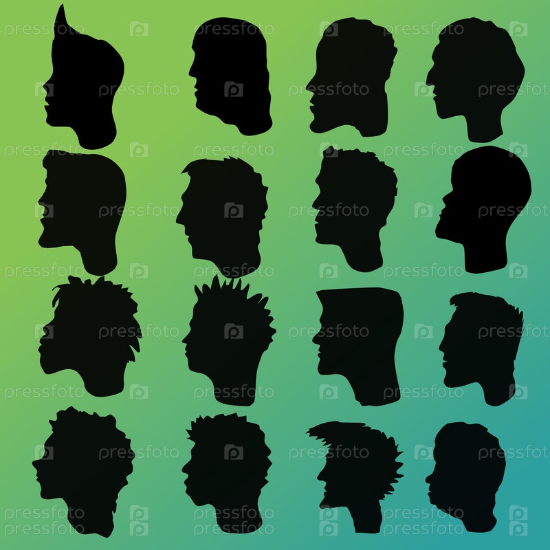 Силуэты Иконы Люди Аватары Разные Головы Профиль мужские