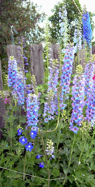 Оформление, озеленение сада, дельфиниум