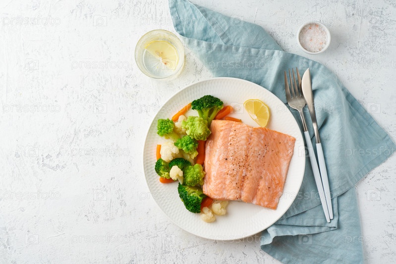 Паровой лосось и овощи, Палео, кето, фодмап, даш-диета. Средиземноморская диета с рыбой на пару
