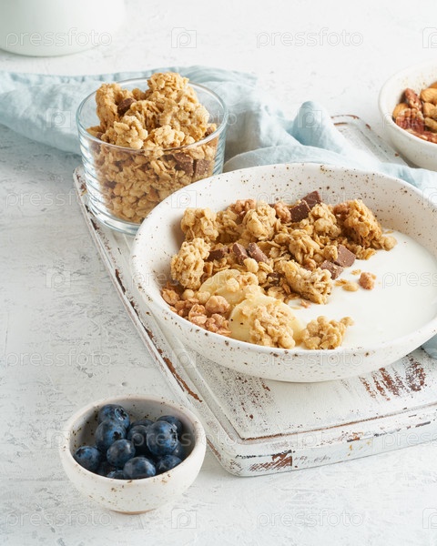 Гранола. Завтрак, здоровое диетическое питание с овсяными хлопьями