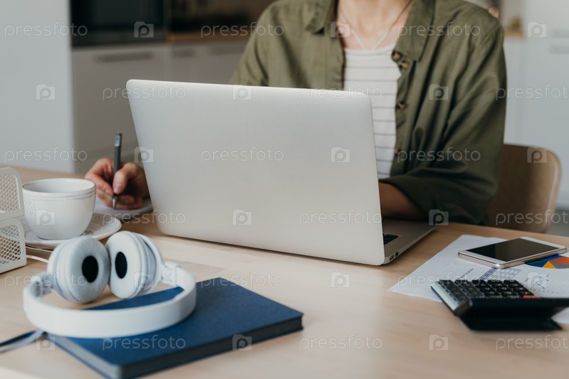 Интернет-покупки, онлайн-обучение, работа на дому. Дистанционное обучение. Женщина печатает в блоге на ноутбуке. Фрилансер, концепция цифрового кочевника
