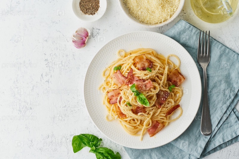 Паста Карбонара. Спагетти с панчеттой, яйцом, сыром пармезан и сливочным соусом