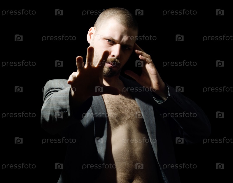Мужчина-гипнотизер на черном фоне