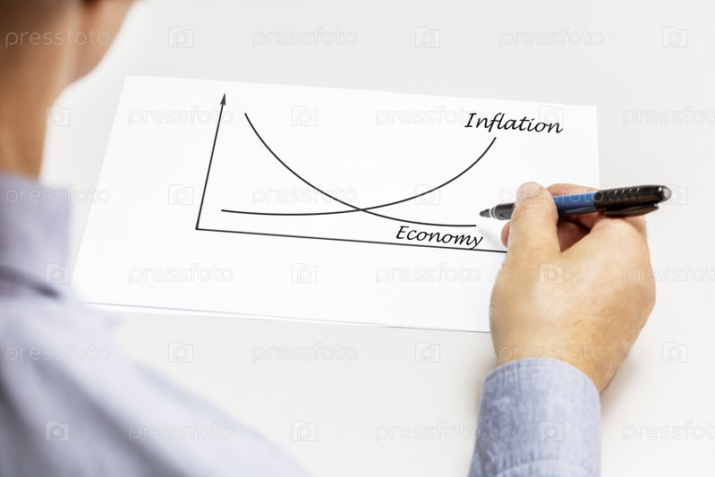 Бизнесмен-финансовый аналитик, человек, анализирующий диаграмму экономики инфляции. Экономический кризис, концепция инфляции
