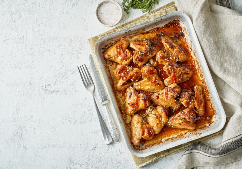 Куриные крылышки барбекю. Липкие азиатские острые крылышки с терияки. Маринованная курица, запеченная в духовке
