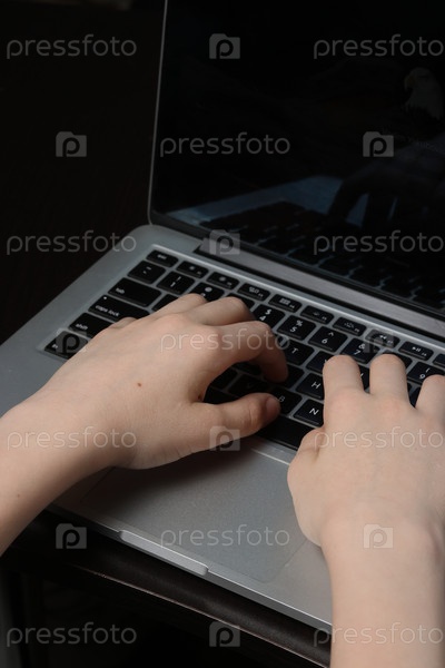 Детальный крупный план ладоней подростка над клавиатурой ноутбука, демонстрирующий его технологическую компетентность и владение компьютером