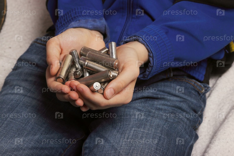 Подросток демонстрирует утилизацию отходов, держа в руках выброшенные пальчиковые батарейки, подчеркивая экологическую ответственность
