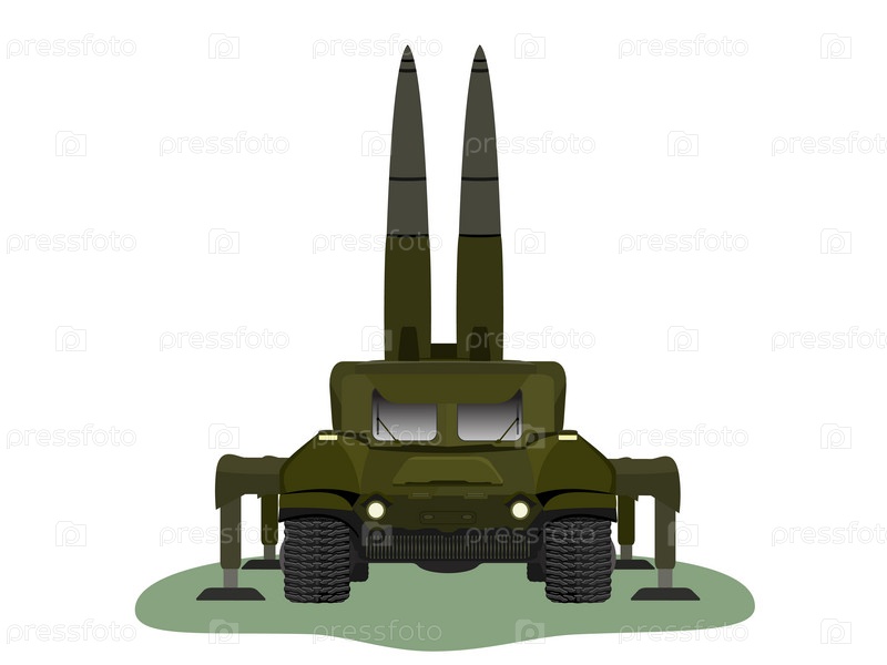 Ракетно-ракетный комплекс. Баллистические военные ракеты. Броневик. Отдельный на белом фоне. ПВО. иллюстрация