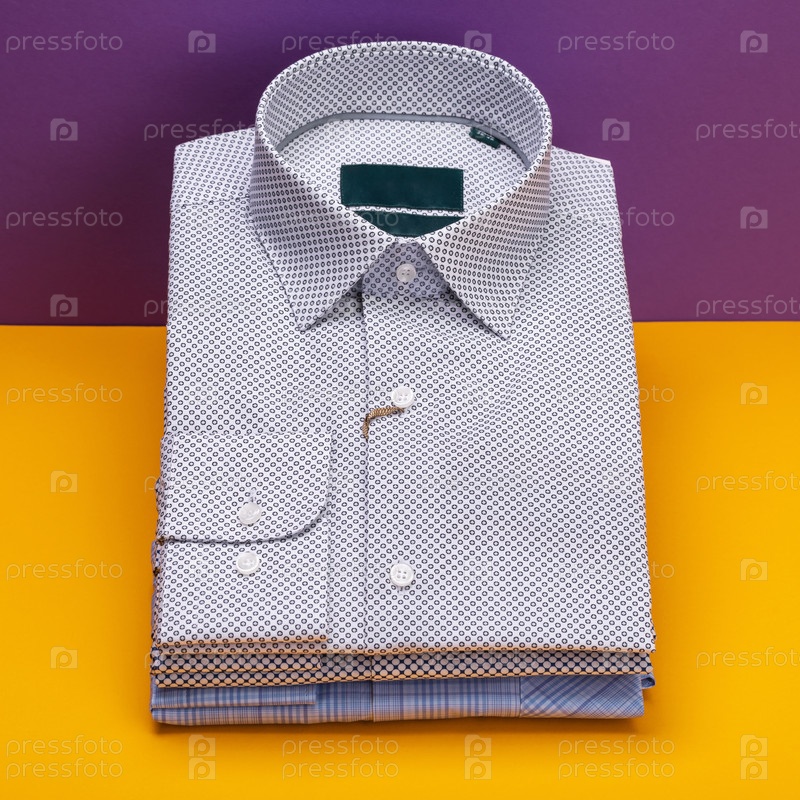 Три сложенные мужские рубашки на цветном фоне