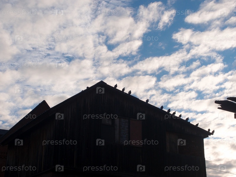Голуби на крыше сельского дома