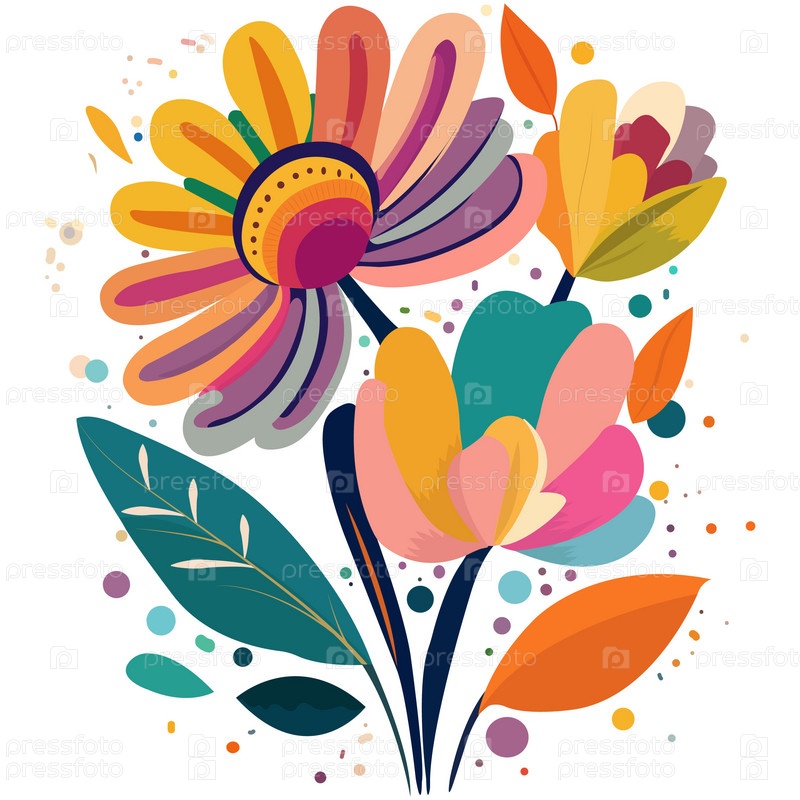 Цветы.Цветы.Яркий букет цветов на 8 марта.Печать.Илюстрация