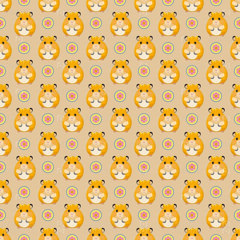Хамстер и цветок, шаблон. Бесшовный фон. Текстура для дизайна. Иллюстрация