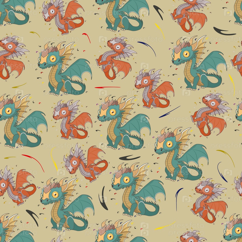 Дракон и линии, шаблон. Бесшовный фон. Текстура для дизайна. Иллюстрация