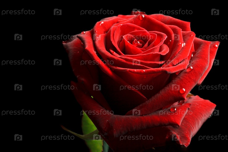 Красная роза с каплями воды на черном фоне